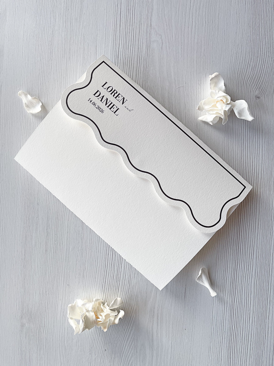 Tuttavia, potrete personalizzare la vostra partecipazione inserendo i vostri nomi, la data del matrimonio e variando i testi interni a vostro piacimento, mantenendo inalterato lo stile unico di questo design.